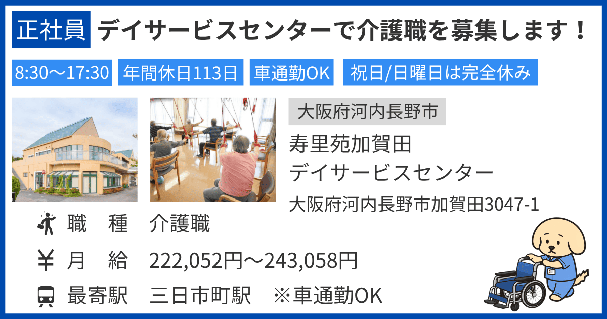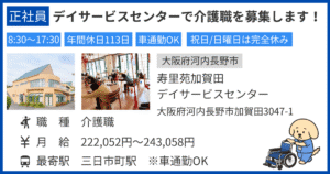 【大阪府河内長野市/介護職/正社員】寿里苑加賀田デイサービスセンターの求人情報