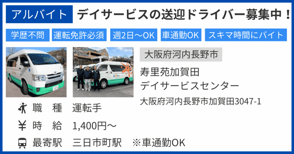 【大阪府河内長野市】介護職/ケアマネ/相談員/夜勤バイトの求人情報(新卒/中途)