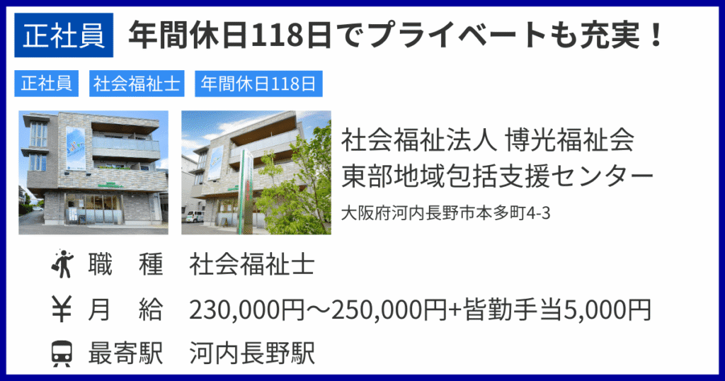 【大阪府河内長野市/社会福祉士】河内長野市東部地域包括支援センターの求人情報